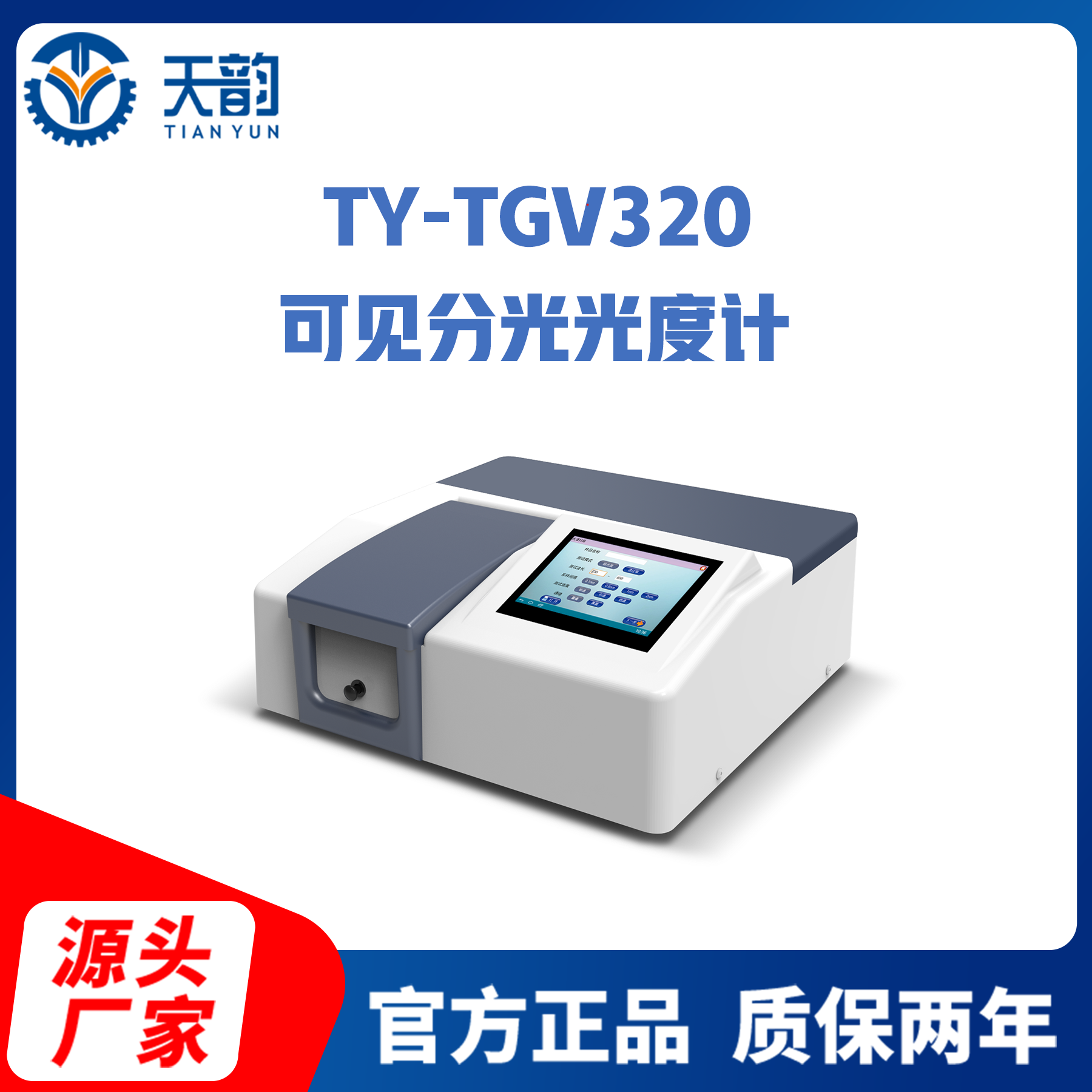 根据朗伯-比耳定律:T=I/ Io;A=KCL=-logI/Io,结合现代精密光学和微电子等高新技术,研究开发的新一代可见分光光度计。